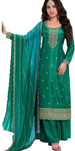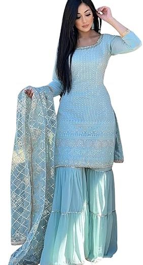 Beautiful Chinnon Punjabi Style Sharara Suit For Women Ready To Wear Salwar Kameez With Dupatta