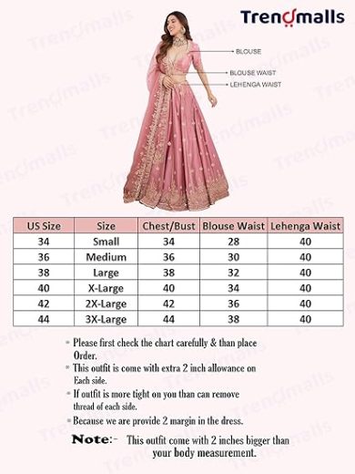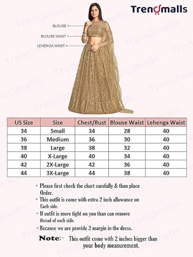 TRENDMALLS Women's Satin Embroidery Sequence work Bridal Lehenga Choli with Dupatta Ready To Wear
