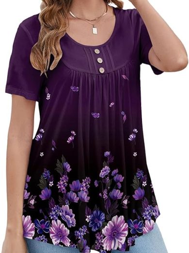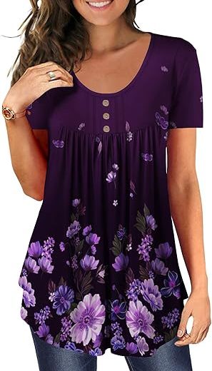 BeadChica Women's Tunic Tops For Leggings Short Sleeve Shirts Botton Up Casual Ruched Blouses Clothing
