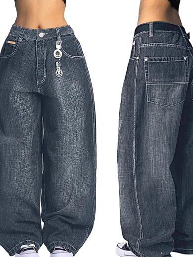 EMMIOL Women Boyfriends Hip Hop 90s Vintage Baggy Jeans Loose Denim Pants Mid-Low Waist Jeans