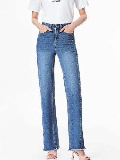 Sidefeel Women's Wide Leg Jeans High Waisted Stretchy Raw Hem Zimbaplatinum Denim Pants