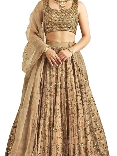 TRENDMALLS Net Sequin Embroidery Work Wedding Ready To Wear Lehenga Choli with Dupatta For Women