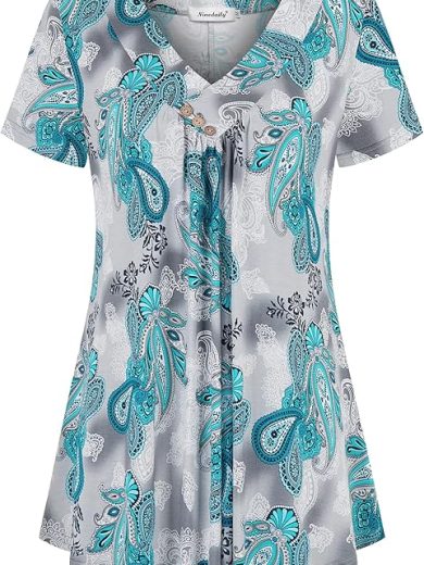 Ninedaily Women's Tunic Summer Short Sleeve Top Loose V Neck Dressy Shirt Blouse