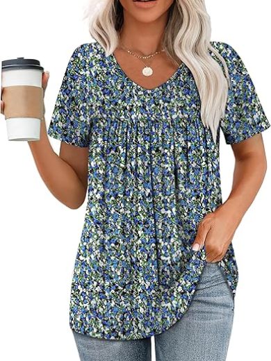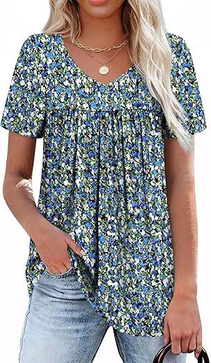 WEESO Womens T Shirts Short Sleeve Pleated Dressy Casual V Neck Summer Tops Blouses