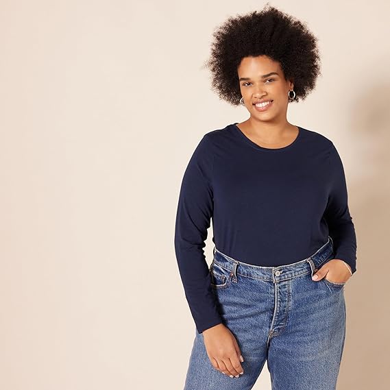 Amazon Essentials Womens Regular-Fit Long-Sleeve Crewneck T-Shirt (Available in Plus Size)