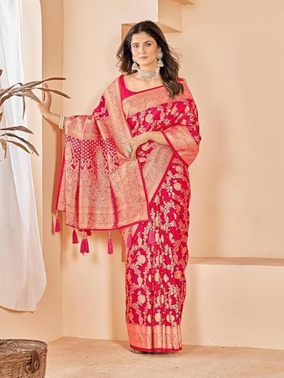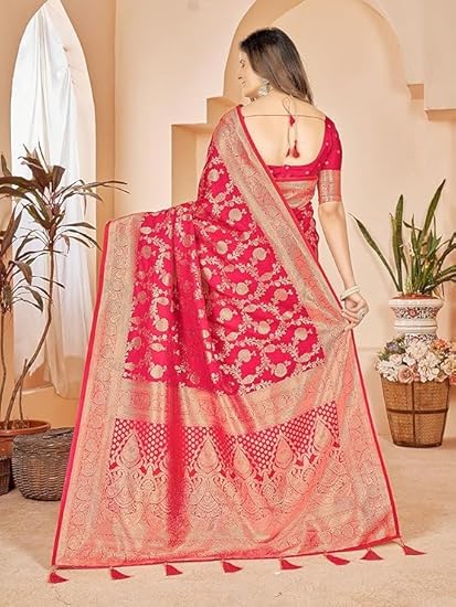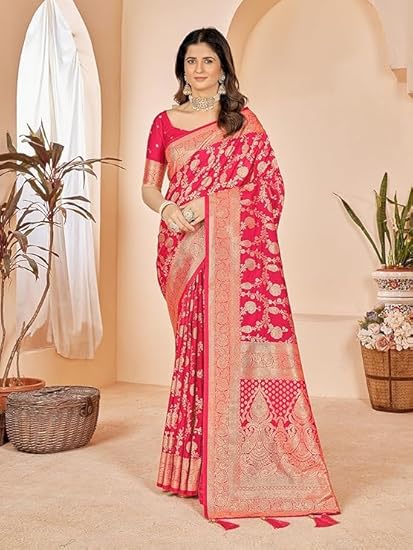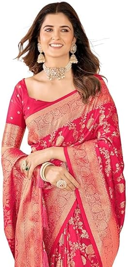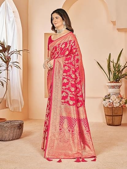 Cotton Banarasi Silk Saree for Women With Unstitched Blouse Piece | Kanjivaram Party Wear Saree For Women