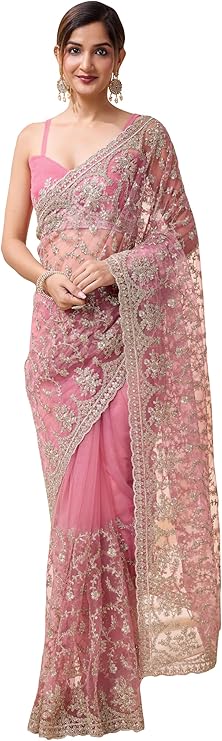 TRENDMALLS Women’s Net Embroidery Work Saree with Unstitch Blouse Piece