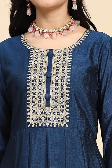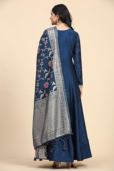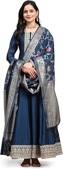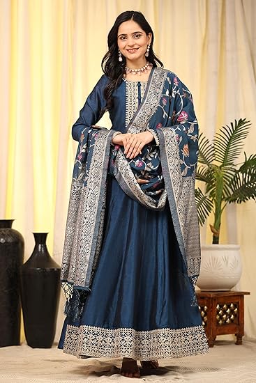 TRENDMALLS Women’s Vichitra Silk Anarkali Suit Set with Jacquard Dupatta for Women Kurta Set for Women